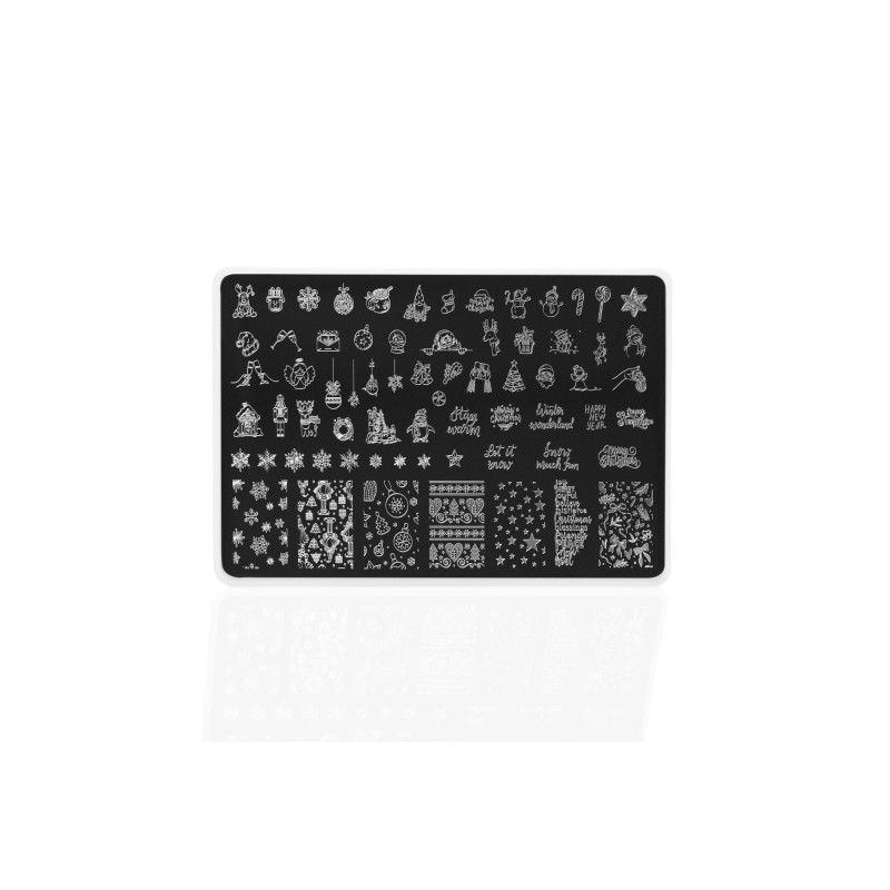 Laserowo cięta blaszka o wymiarach 14,5 x 9,5 cm oferuje szeroki wybór zimowych motywów, pozwalających urozmaicić każdy manicure niezależnie od rodzaju płytki paznokcia. Dołączony wzornik umożliwia sprawdzenie efektu przed wykonaniem stempla, co ułatwia dobór kompozycji i planowanie zdobień.