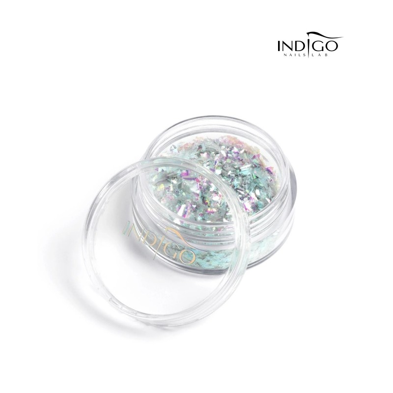 Te drobne, opalizujące płatki lśnią błękitem i zielenią, tworząc spektakularny efekt na paznokciach. Ich wyjątkowy połysk zmienia się wraz z ruchem dłoni, przyciągając spojrzenia i dodając każdej stylizacji świeżości.