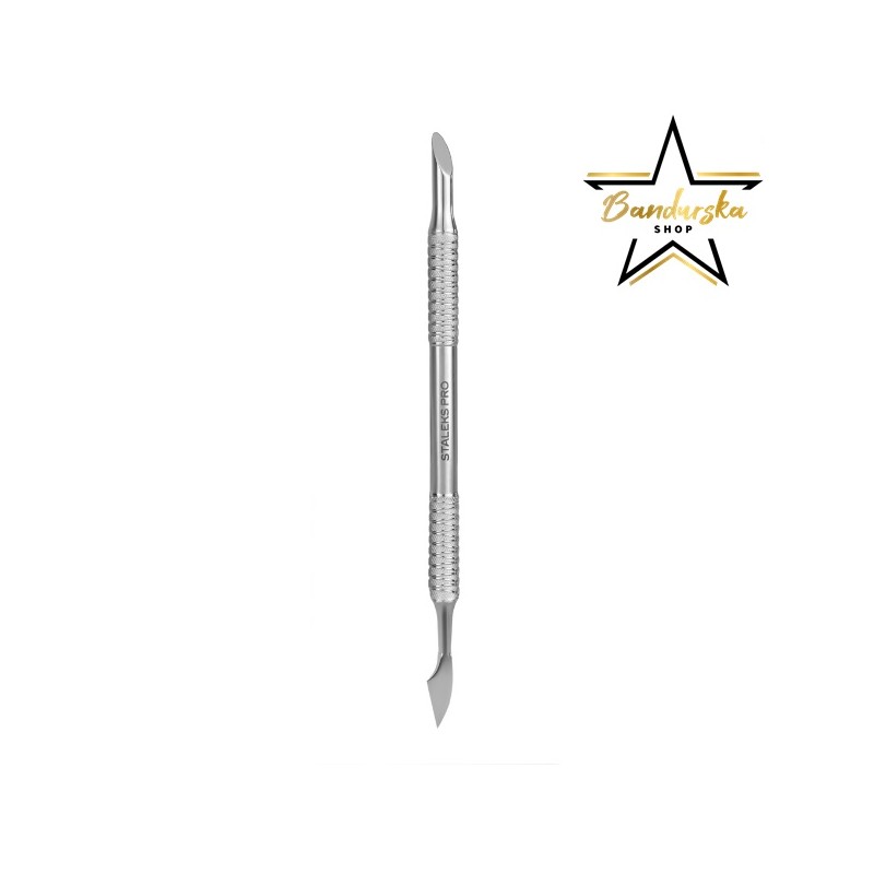 Skośny popychacz idealnie sprawdza się przy usuwaniu twardych, przylegających skórek, oczyszczaniu wolnych brzegów i eliminowaniu pozostałości żelu.