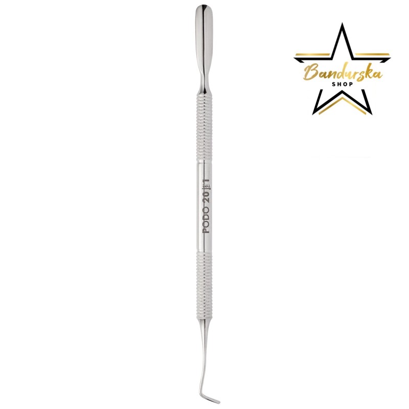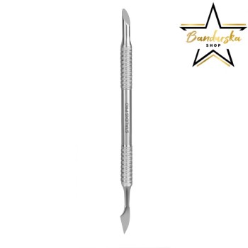 Zaokrąglony popychacz delikatnie czyści płytkę paznokcia, nie powodując podrażnień. Precyzyjna kiretka umożliwia usunięcie cienkiej błony pterygium, martwego naskórka spod paznokcia i oczyszczenie przestrzeni między płytką a łożyskiem.