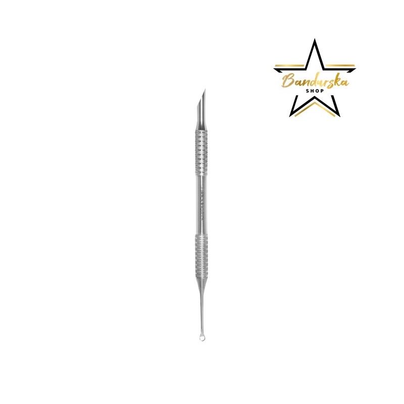 Skośny popychacz umożliwia dokładne odsuwanie przerośniętych skórek, oczyszczanie wolnych brzegów paznokcia oraz usuwanie pozostałości lakieru żelowego.