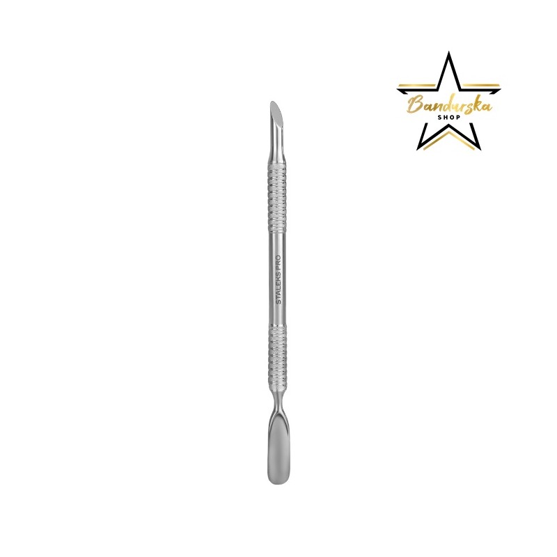 Kopytko Staleks 90/2 łączy w sobie dwie funkcjonalne końcówki, dzięki czemu sprawdzi się w każdej sytuacji. Skośny popychacz doskonale radzi sobie z mocniejszymi, przerośniętymi skórkami, zanieczyszczeniami w okolicach wałów paznokciowych czy resztkami lakieru hybrydowego.