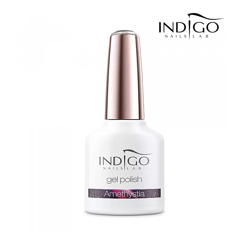 Amethystia Gel Polish Indigo o pojemności 7 ml to różowy lakier hybrydowy mieniący się fioletową drobiną, która rzuca wyjątkową, fioletowo - różową poświatę. Ten lakier hybrydowy marki Indigo Nails o lekko kremowej konsystencji zapewnia idealne krycie już przy dwóch cienkich warstwach produktu.