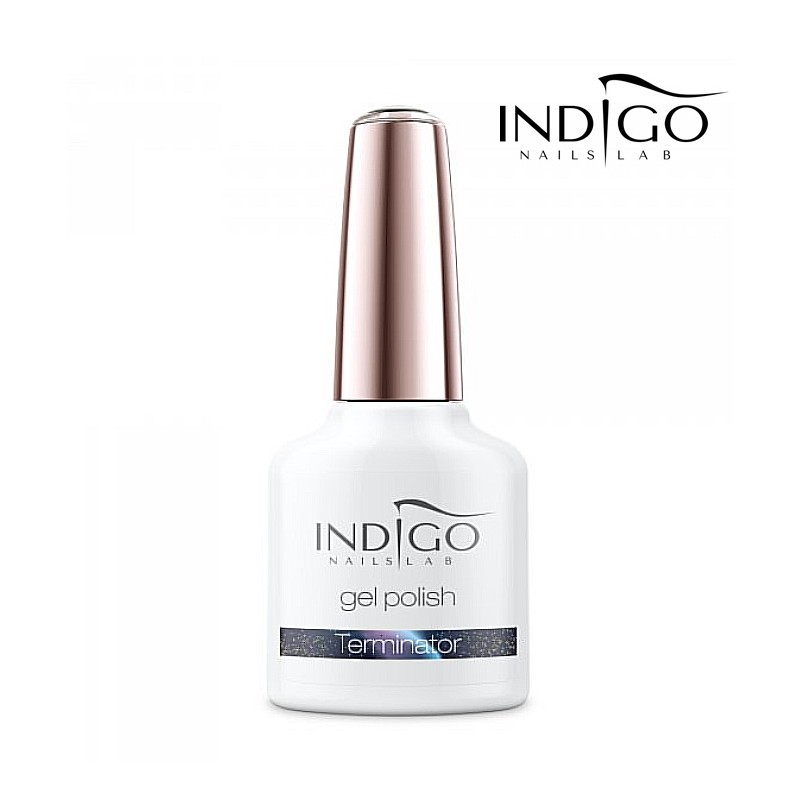 Terminator Gel Polish Indigo o pojemności 7 ml to metaliczny, srebrny lakier hybrydowy mieniący się multikolorową drobiną, oraz efektowną, srebrną poświatą. Ten lakier hybrydowy marki Indigo Nails o delikatnie kremowej konsystencji zapewnia idealne krycie już przy dwóch cienkich warstwach produktu.