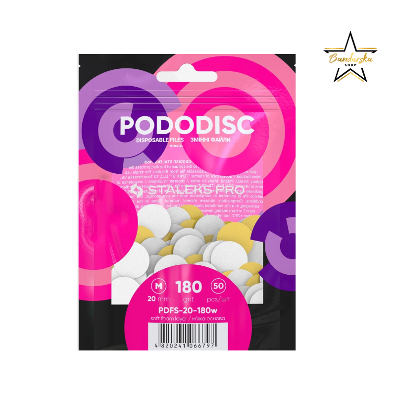 Jednorazowe nakładki Pododisc M 180 o średnicy 20 mm to niezawodne narzędzie do codziennej, podstawowej obróbki stóp o średnio zrogowaciałej skórze.