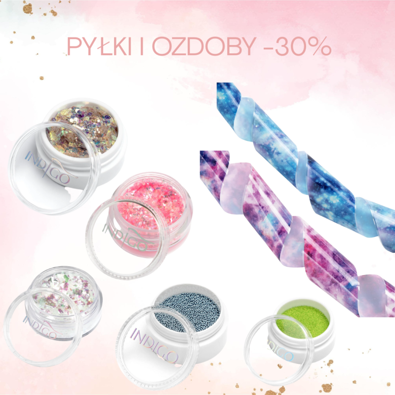 Od dnia 13.06.2025 obowiązuje promocja -30% na wybrane pyłki i ozdoby marki Indigo Nails!