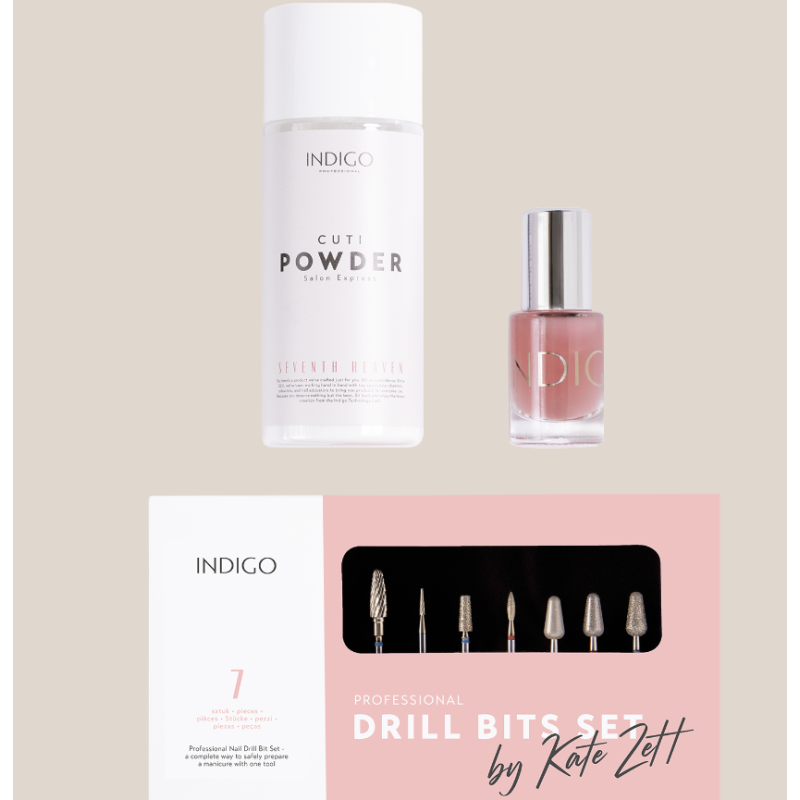 Zawartość zestawu uzupełniają dołączone preparaty — Cuticle Remover i Cuti Powder oraz kurs, który pomoże Ci opanować tajniki pracy z tymi narzędziami, umożliwiając osiągnięcie mistrzowskich efektów.