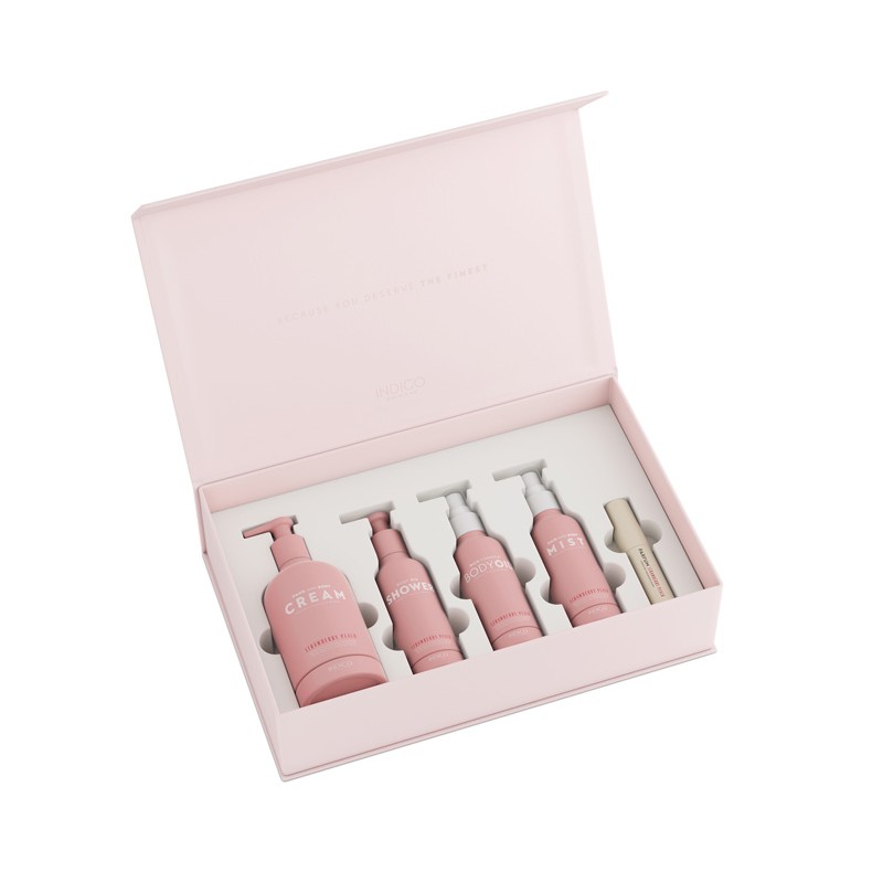 Ten Zestaw Spa stworzony przez firmę Indigo Nails zawiera pięć luksusowych kosmetyków o pociągającej i gustownej kompozycji aromatów, w której odkryjesz soczystą truskawkę połączoną z aksamitną brzoskwinią z dodatkiem bergamotki, mango, kokosa oraz drzewa sandałowego, piżma i delikatnej nuty toffee. Całość przeniesie Cię do krainy słońca i uśmiechu!